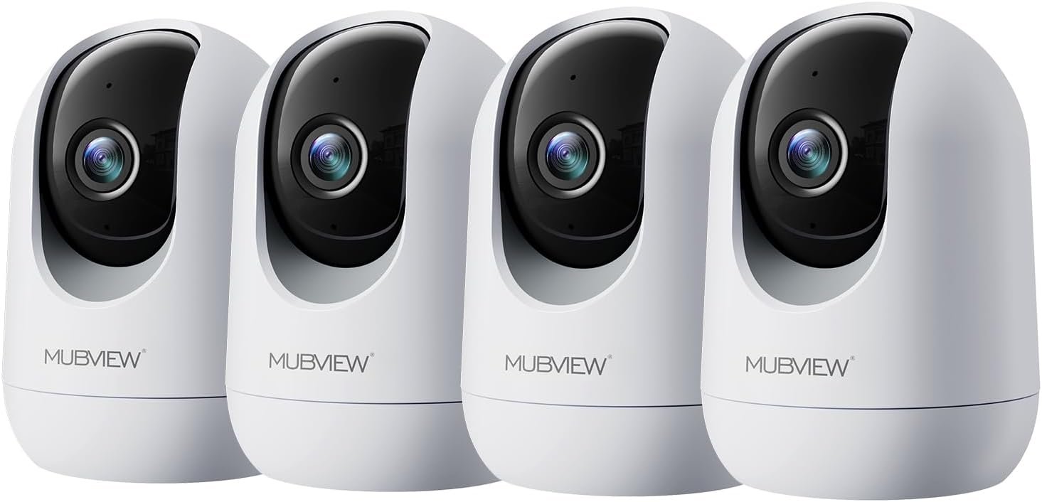 MUBVIEW Pet Camera with Phone App, Indoor Security Camera, 2.4/5GHz WiFi Cameras for Home Security, Wired Cameras for Dog/Elder/Baby, Motion Tracking, PT, 7X24, Two-Way Audio, 2K Night Vision (4 Pack)