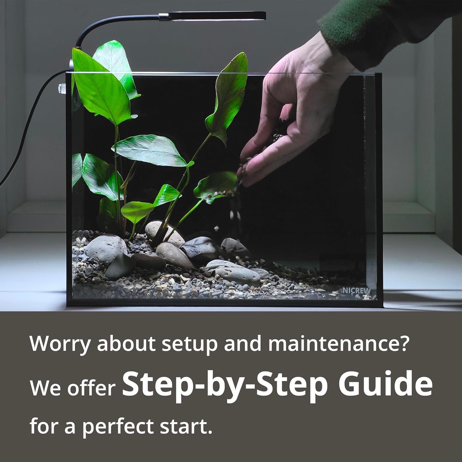 NICREW Nano Nature Aquarium Kit, 2.5 Gallon, Complete Version, Ultra-Clear Rimless Desktop Fish Tank with Filter, Light, Natural Gravel, River Rock and Starter Guide