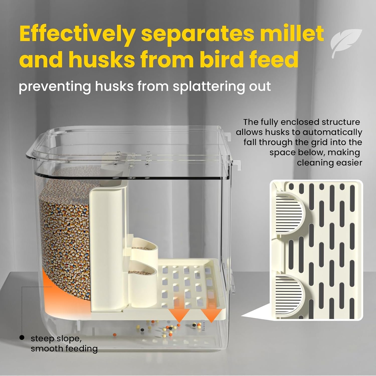 No Mess Automatic Bird Feeder,Multifunctional Parrot Seed Feeders,Transparent Seed Food Container,Bird Cage Accessories for Canaries Budgies Lovebirds Conures Cockatiels