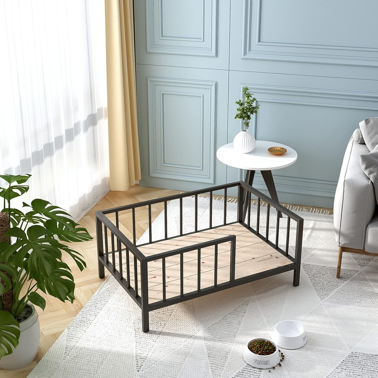 SOLID STRUCTURE & CHEW RESISTANT – The dog bed frame is made of thick metal pipe, plus solid wood bed board so that the whole bed is extremely strong. The metal pipe also ensures the dog bed will not be damaged by any pet’s biting. In addition to the mat, we believe this pet bed frame will accompany your pet for a lifetime.