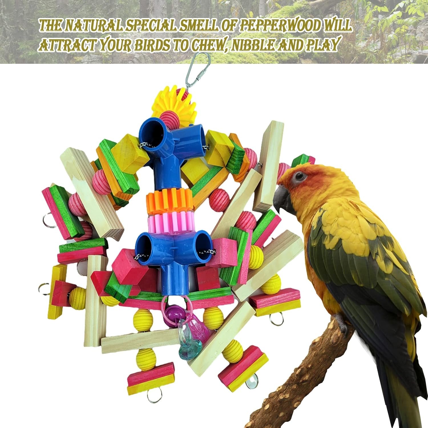 🐤 100% Natural & Safe Materials: Handmade from natural wood blocks and dyed with food-grade coloring, these toys are non-toxic and safe for your bird. The natural wood scent attracts birds, encouraging them to chew, play, and stay active.