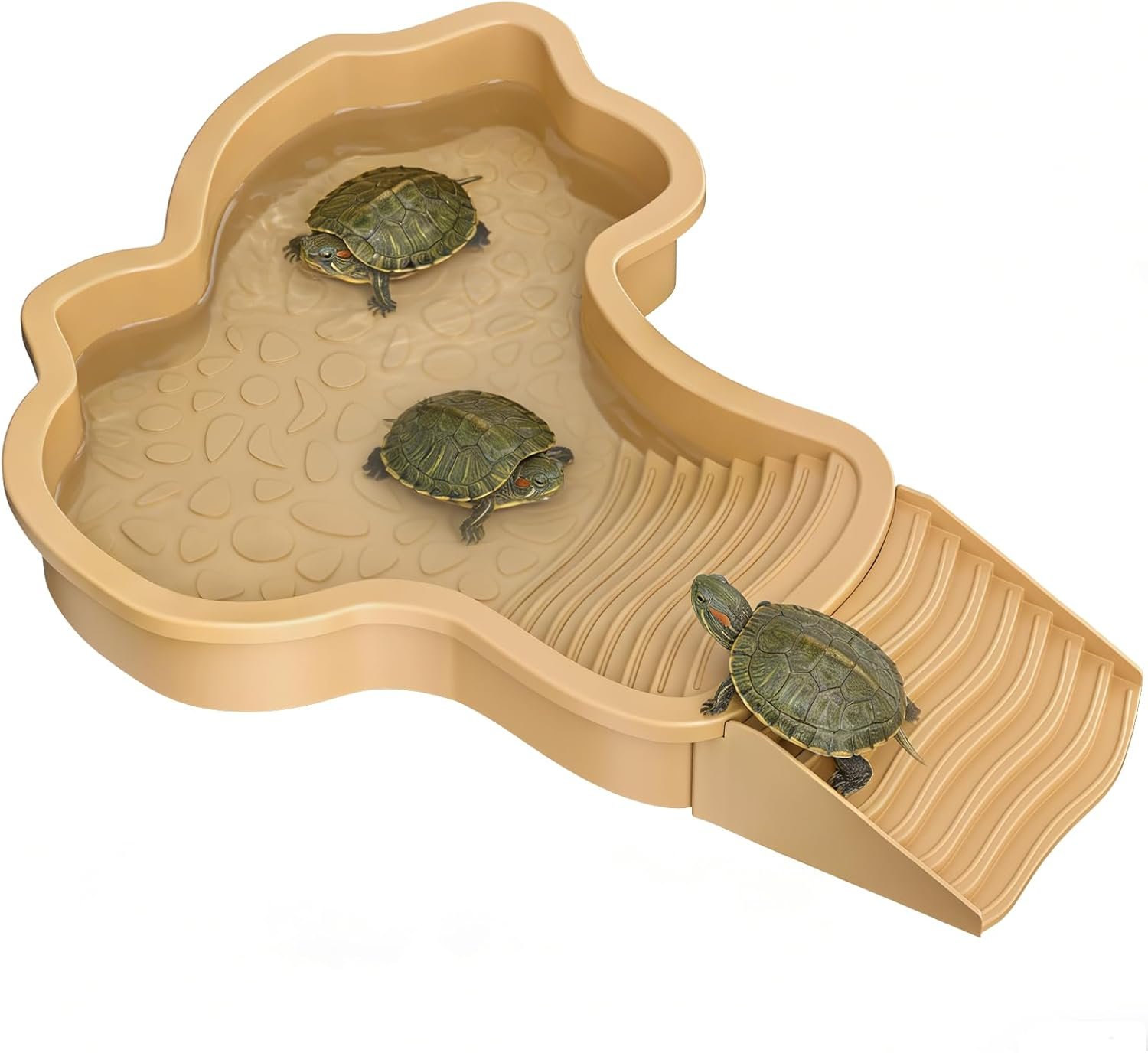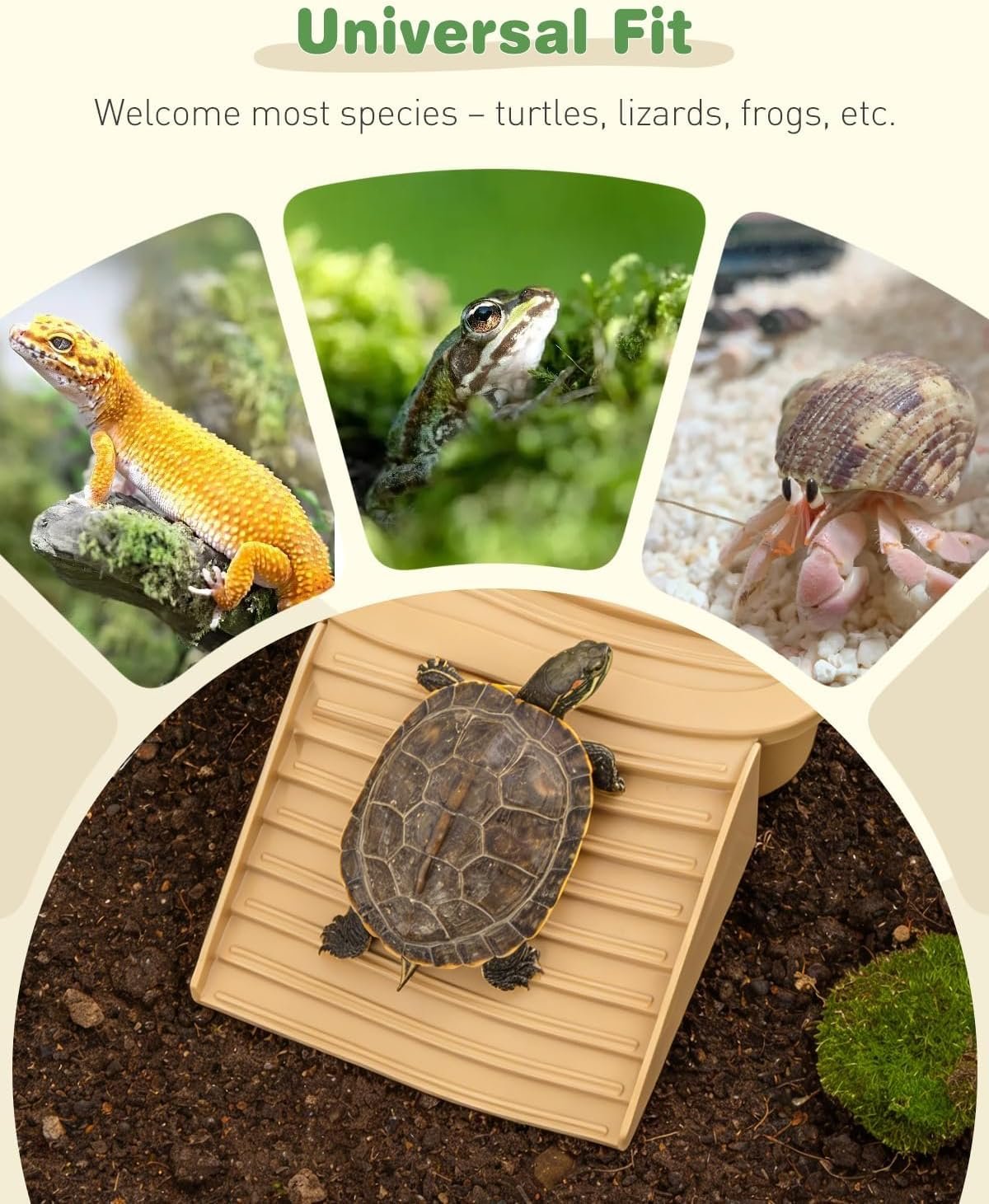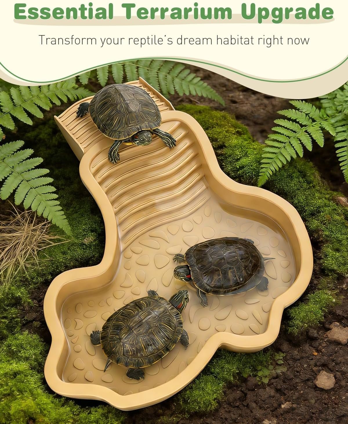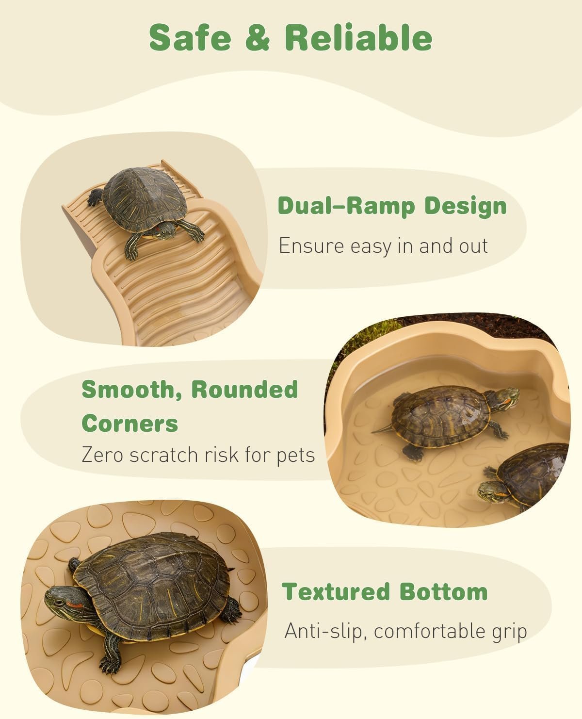 Dual-Ramp Convenience: Built-in multi-step ramp plus a removable extension ensures every reptile navigates the tortoise water dish with complete confidence! Anti-slip ridges on every level provide a steady footing for safe climbing, resting, and basking
