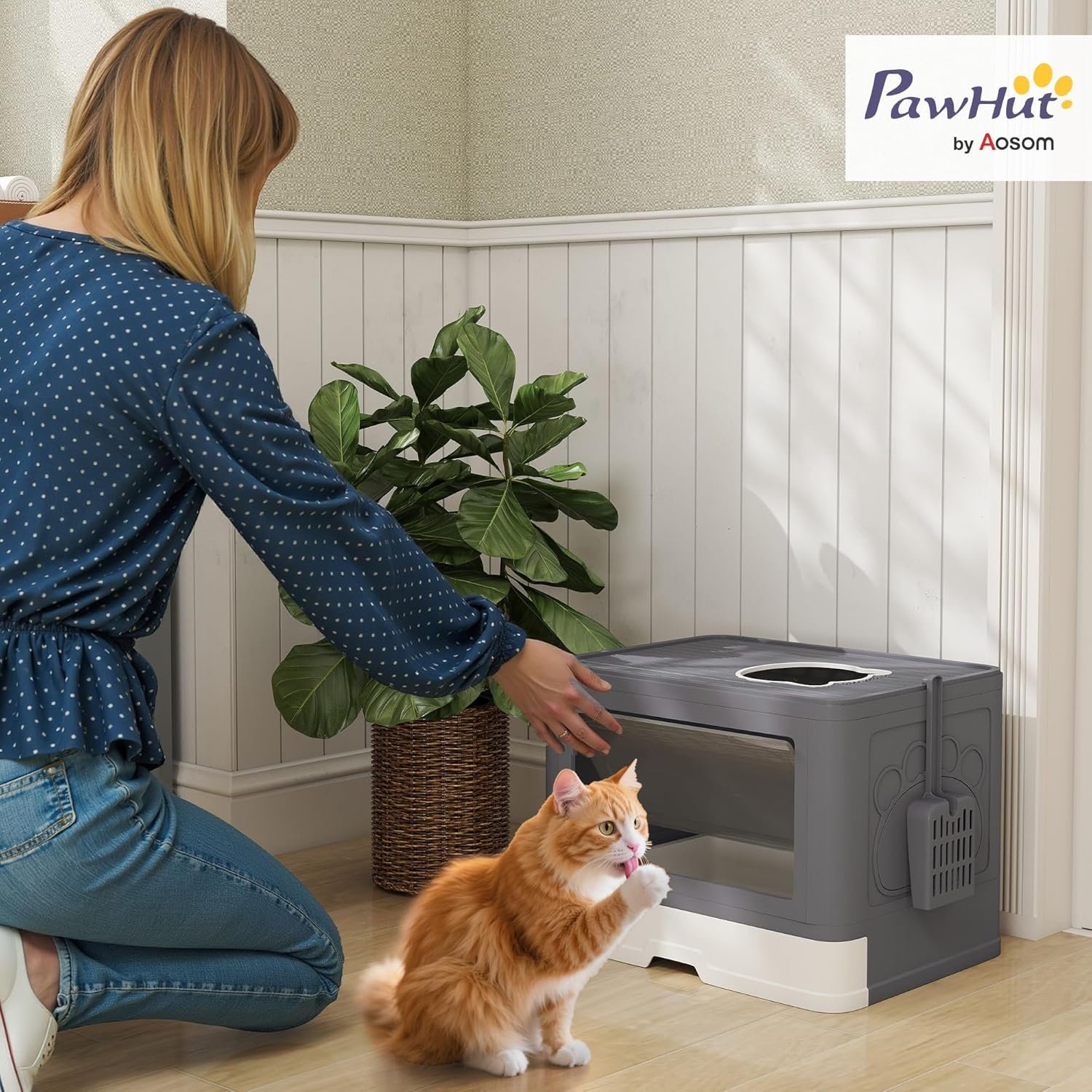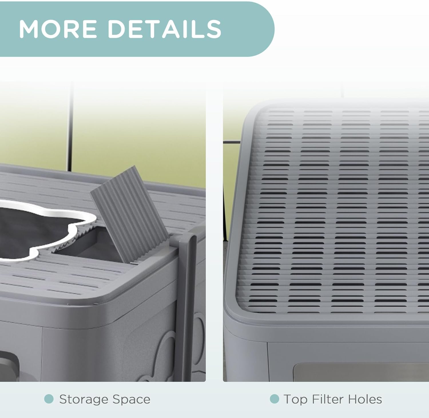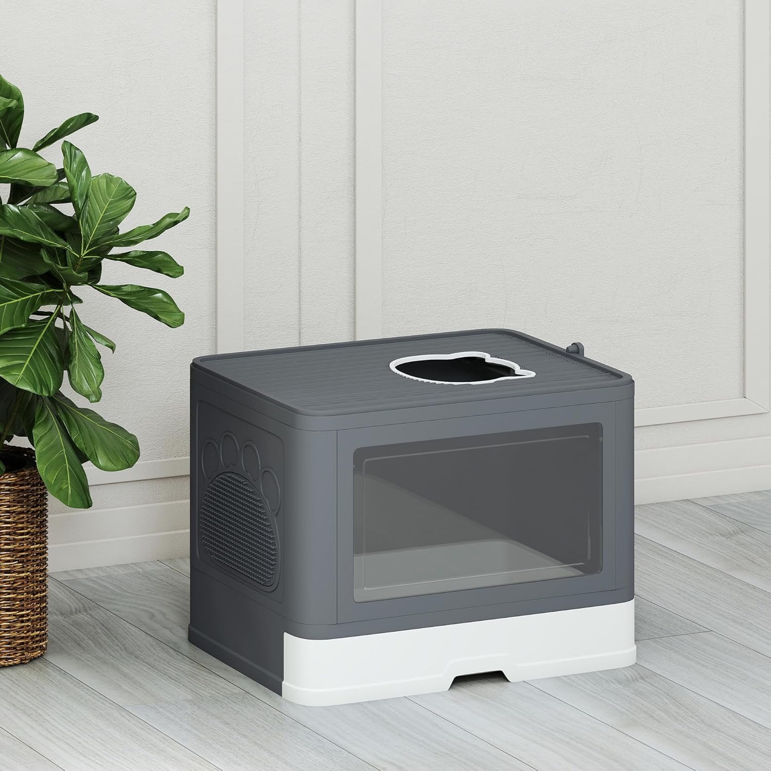 Space-Saving Solution: Organize efficiently while keeping everything within reach. Our covered litter box is designed with convenience in mind. Its compact size makes it easy to store and place in any room. The top section even provides storage space for litter or other cat essentials