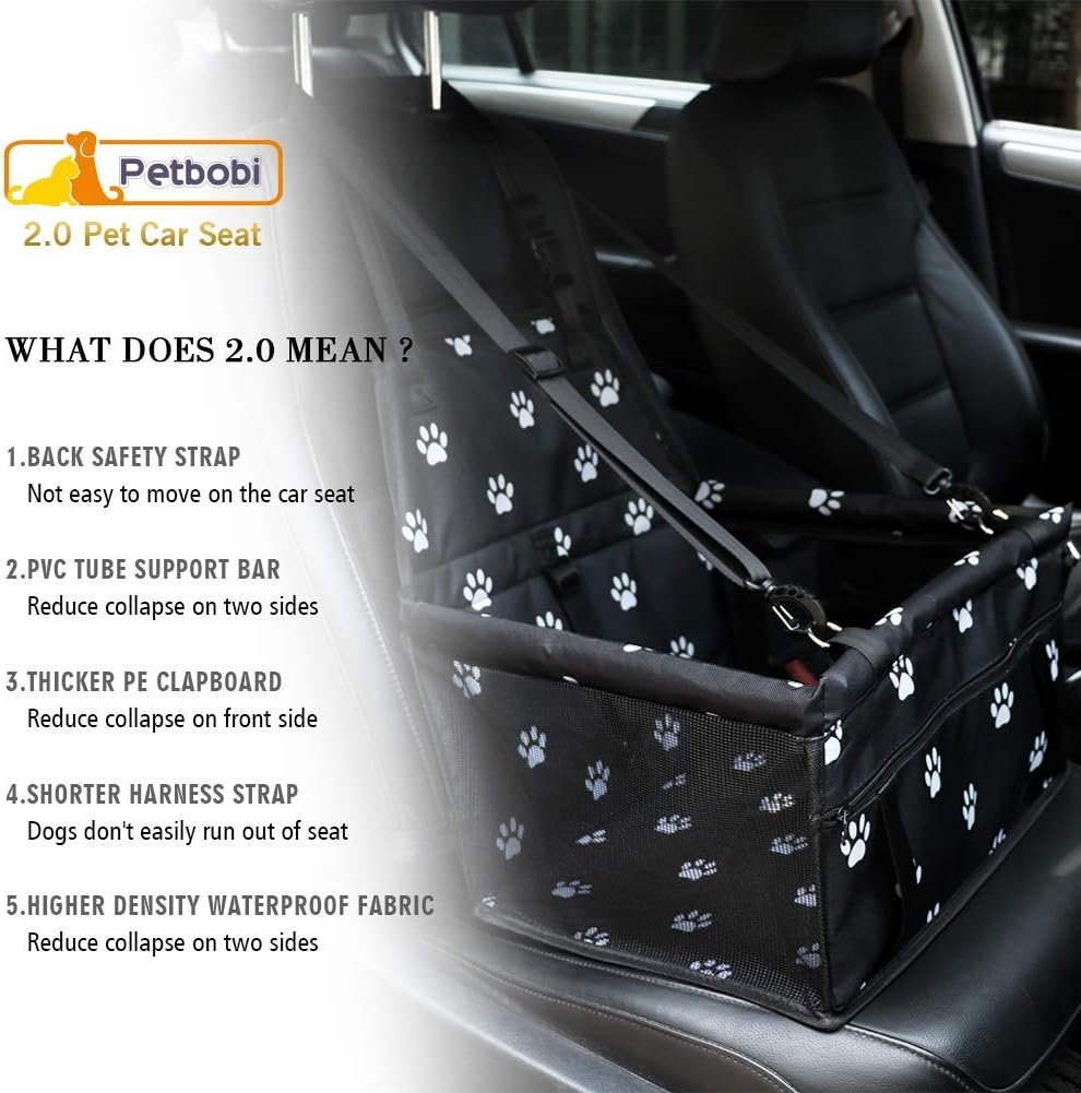 Upgraded Reinforced Structure: Based on buyer voice, Petbobi dog car seat features thicker PE panels on the back, bottom, and front, reinforced PVC tube side supports, an added seat-back strap, and a shortened safety leash for improved stability