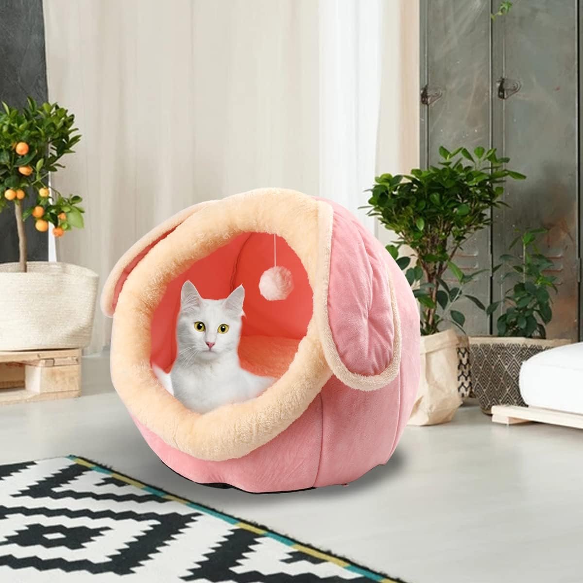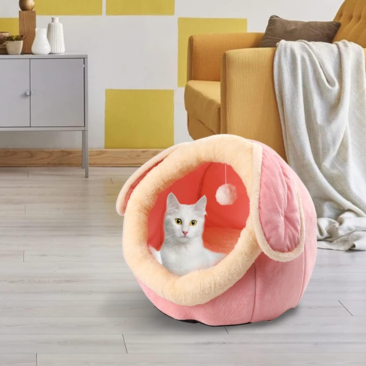PowerKing Cat Bed for Indoor Cats,Cat House Furniture for Pet Kitten Tent Cave,Cute Dog Beds for Puppy Medium Dogs with Removable Washable Soft Cushioned Pillow,New Pink