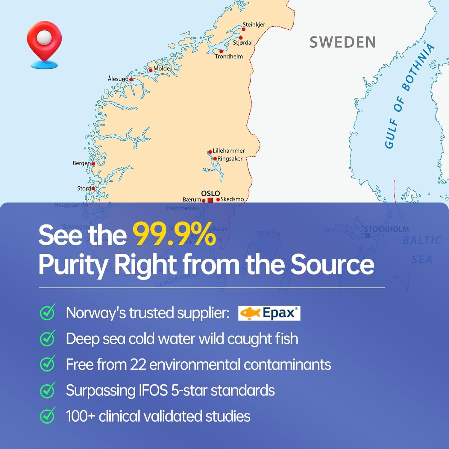 IFOS 5-STAR CERTIFIED: Sourced from Norwegian wild-caught, deep sea cold-water fish like sardines and anchovies. TGN form, 99.9% purity, enzymatic processing. It’s mercury-free, and has been 3rd-party tested to ensure it is free from environmental contaminants and oxidative impurities