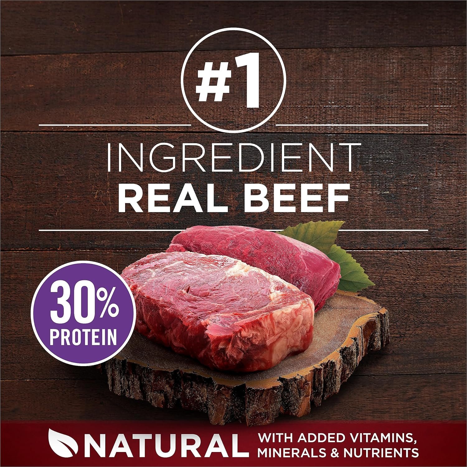 High protein dog food with real beef as the number 1 ingredient and bison contains 30 percent protein to support strong muscles, including a healthy heart, and an active lifestyle