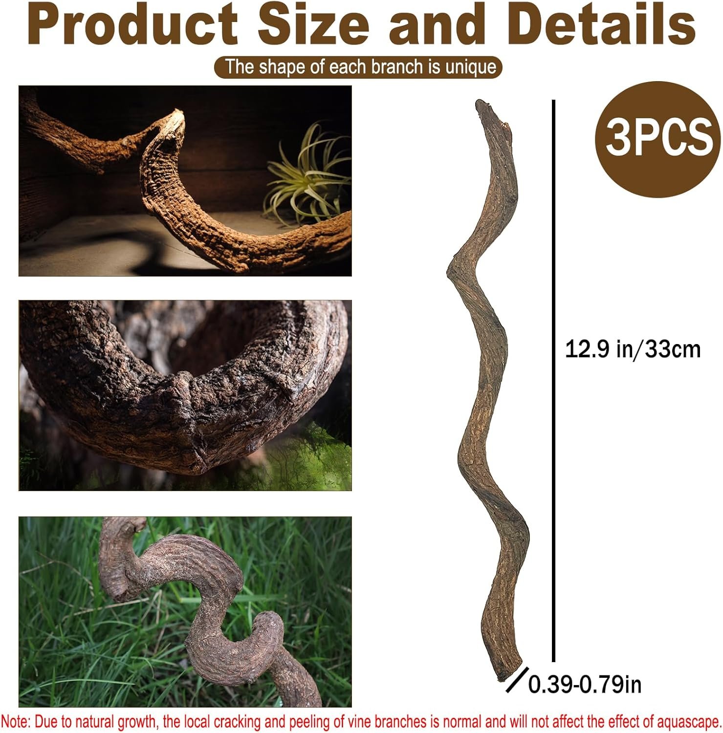 【Natural Wood Branches】Crafted from natural vine branches, the reptile branches are safe, durable, and won’t harm your pets. Your reptiles will enjoy climbing and basking in the sun on these branches, making them perfect for reptile climbing and providing appropriate exercise.