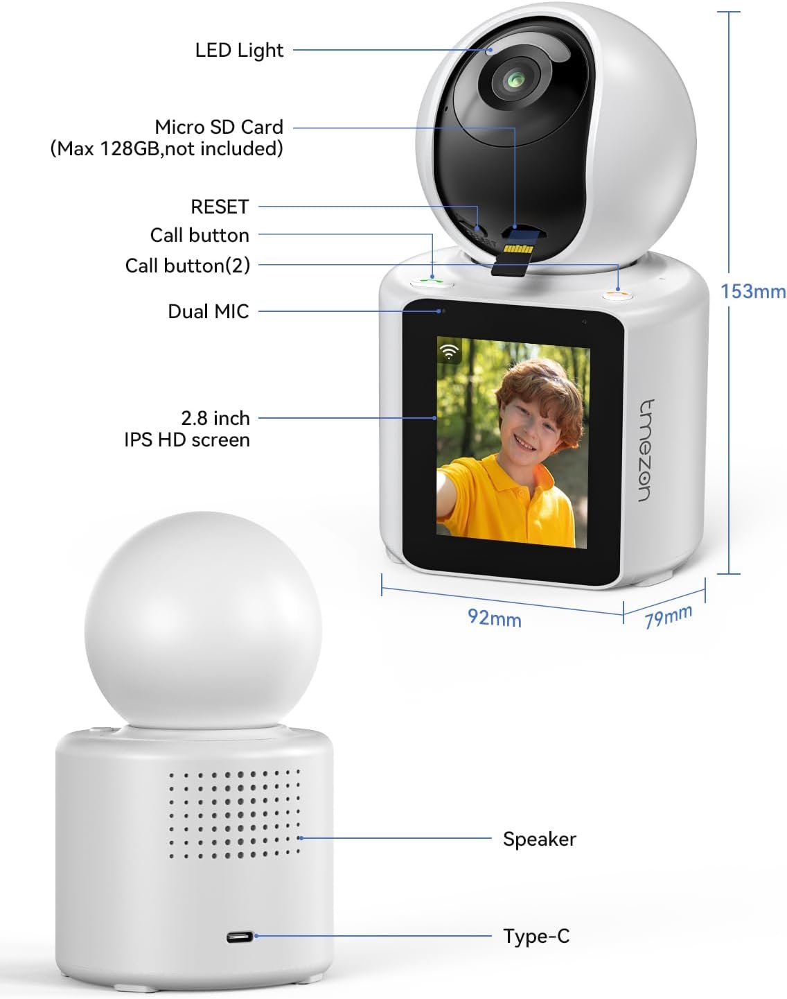 【Two-Way Video/Audio Camera】This pet camera indoor with a 2.8 inch high-definition display and two-way video calling, the Home camera allows for intimate interaction and a better communication,Use two-way Video to communicate with nosy roommates, grandparents, or even mischievous pets.