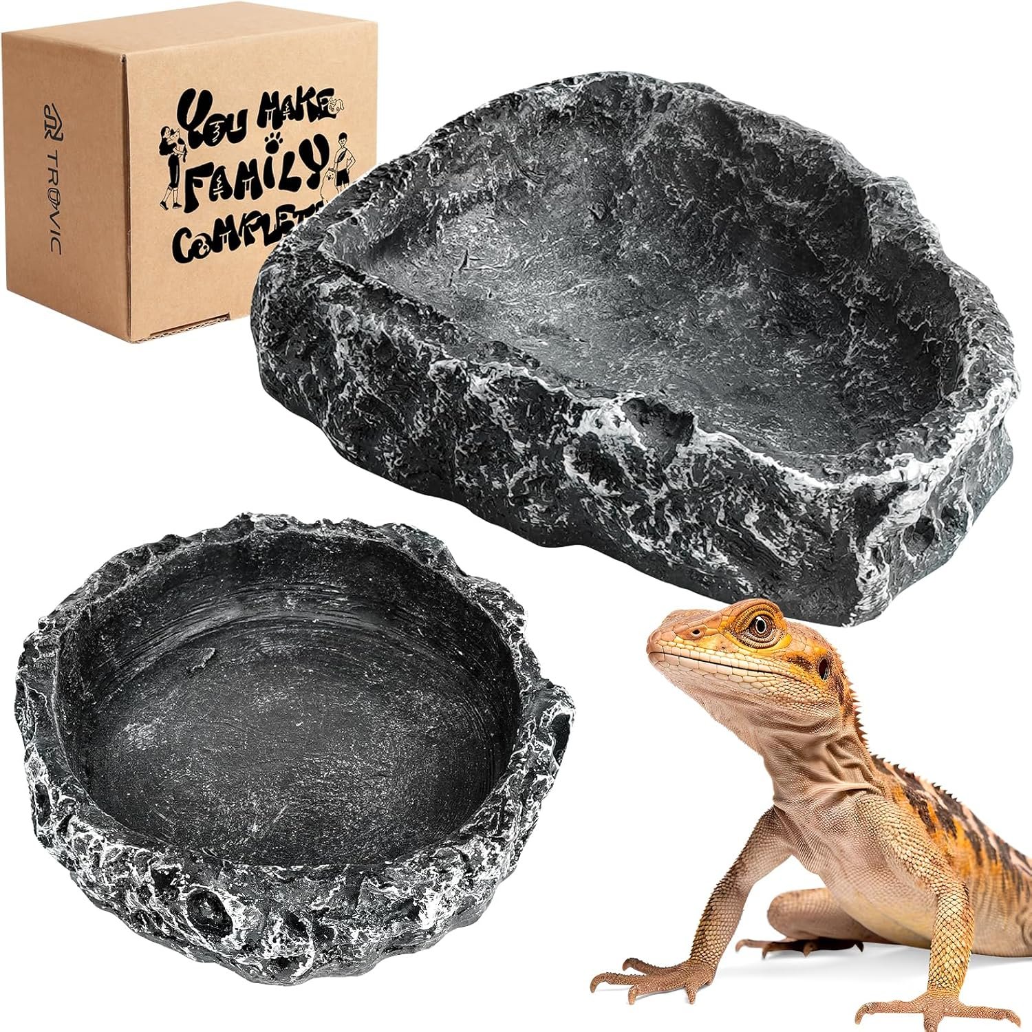 TRUVIC 2 Pack Reptile Feeding Dish Set, Reptile Water Dish Food Bowls for Bearded Dragon Tank Accessories, Resin Terrarium Bowls for Leopard Gecko, Lizard, Chameleon, Hermit Crab, Tortoise, Frog