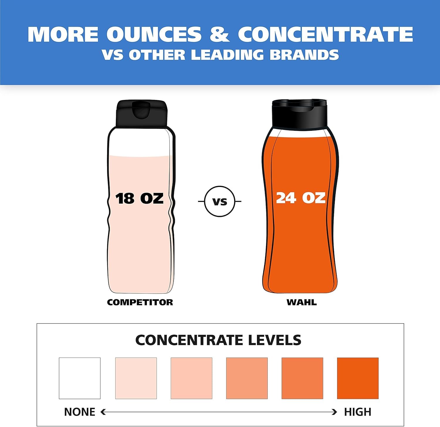Less is More – Wahl has a higher concentrate of coconut derived sodding agent, which means you don’t have to use as much as other dog shampoos. A little bit of shampoo goes a long way and provides a rich lather that’s easy to rinse off